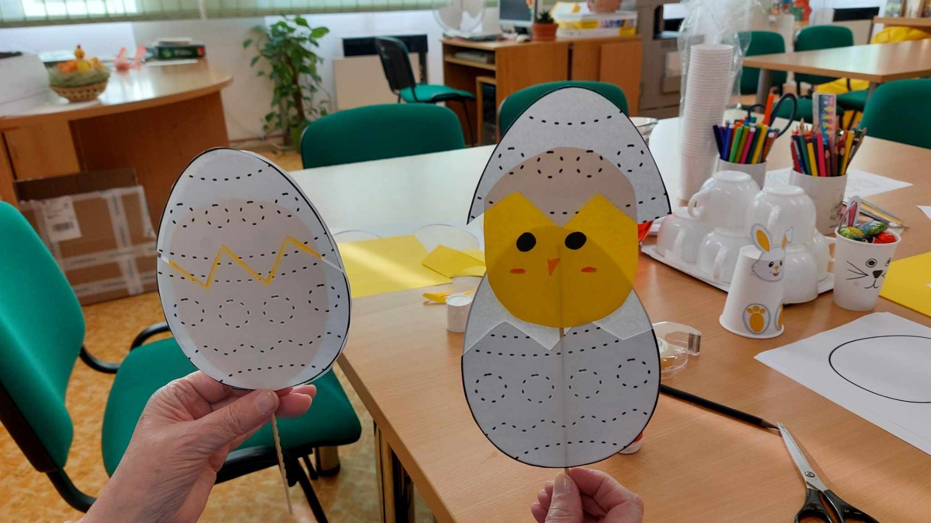 Návštěvníci si v pondělí 18. 3. mohli vyrobit kelímkové zajíčky, vyklubávající nebo vykukovací kuřátka, vymalovat kraslici nebo vyrobit zaječí masku. Za odměnu dostali všichni přítomní čokoládového zajíčka.